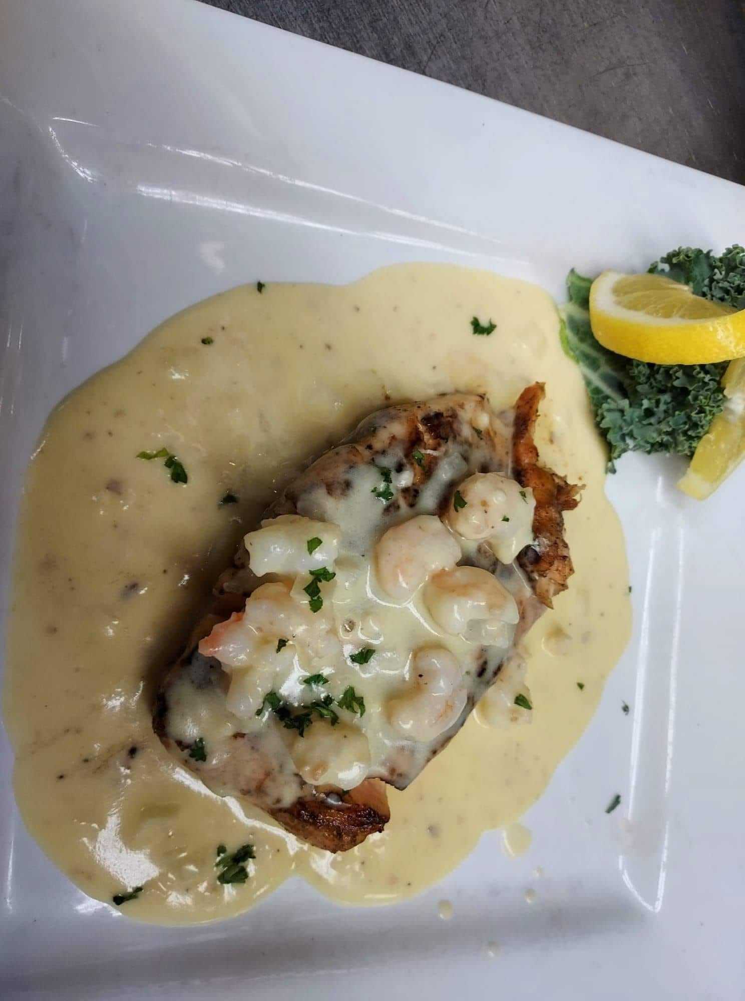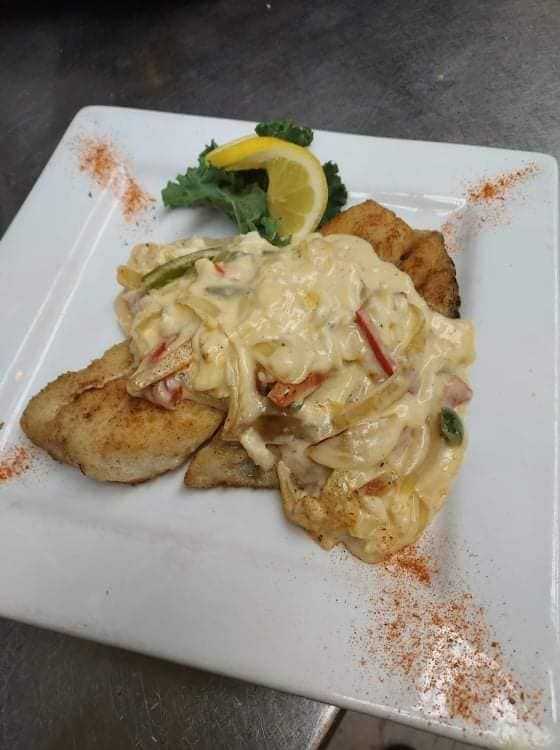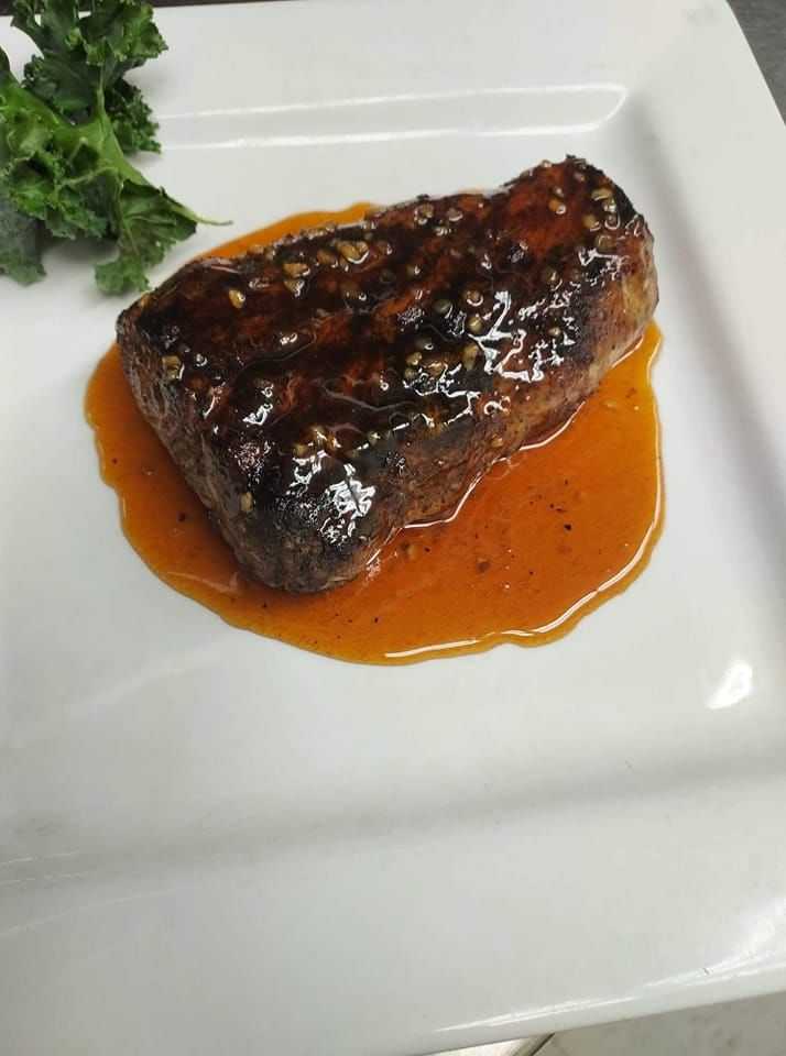 A laid-back bar & grill offering chops & seafood in a log-style building with a cozy, rustic interior.