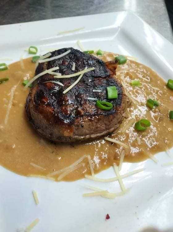 A laid-back bar & grill offering chops & seafood in a log-style building with a cozy, rustic interior.